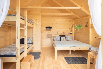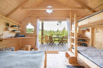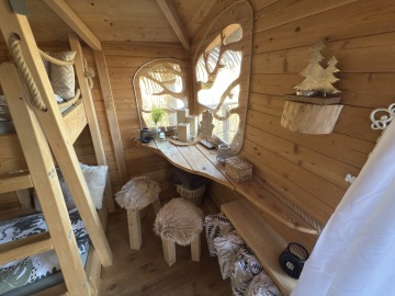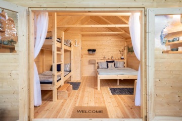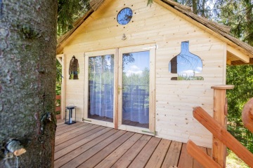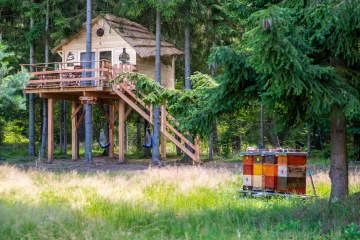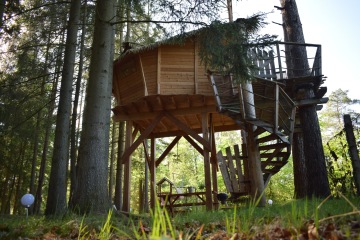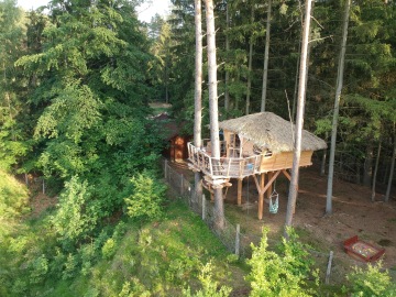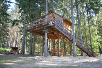Dopřejte si originální a nevšední zážitek ve dvou treehousech s možností turistických výprav po okolí, sportovního vyžití na přilehlé a oblíbené cyklostezce, koupání v blízkém rybníku či houbařských výprav do okolních lesů. Vyzkoušejte opravdový návrat k přírodě a zkuste alespoň na pár dní výjimečný pocit života bez elektrické energie, televize či počítačů. K relaxačnímu posezení u dobrého jídla či kvalitního vína přímo vybízí terasa treehousu s výhledem na rybník pod domečkem.